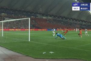 比赛第68分钟,恩里克打门被扑,侯永永补射打飞&懊恼趴地,场上比分玉昆0-0海牛。